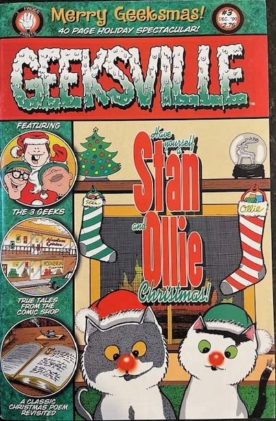 The 3 Geeks became Geeksville in 1999 when I joined forces with Gary Sassaman, creator of the amazing Innocent Bystander! It also featured a new backup installment called, True Tales From The Comic Shop! This issue was our first Christmas Issue! Also, it features Part 1 of the Y2K storyline which was then continued in issue #0 published by IMAGE Comics!