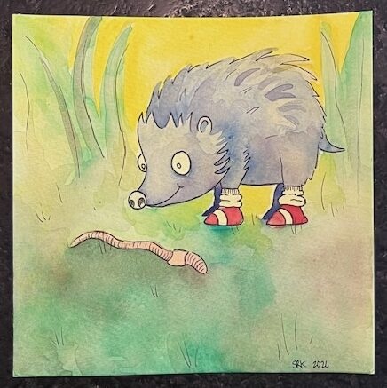 This is an original watercolor painting called “Sonic!” by artist, Stella Rose Koslowski. Beautiful, whimsical, and vibrant!